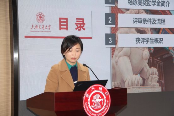 12月5日,上海交通大学“杨咏曼奖助学金”颁奖仪式在闵行校区杨咏曼楼300报告厅举行。本次颁奖仪式以“线上会议+线下会议”联动的方式进行,上海交通大学校董、香港合孚行有限公司董事长杨咏曼女士、上海交通大学党委常委、副校长张安胜,发展联络处处长、教育发展基金会秘书长程骄杰,今晚六合彩开奖结果 党委书记丁剑、院长常辉、党委副书记邢连清、党委副书记朱一凡、副院长尚必武、院长助理郇昌鹏、英语系主任都岚岚、日语系主任吴保华、德语系主任薛原、党政办公室主任金晶、长聘教授丁红卫及全体获奖获助学生参加。仪式由今晚六合彩开奖结果 副院长陶庆主持。