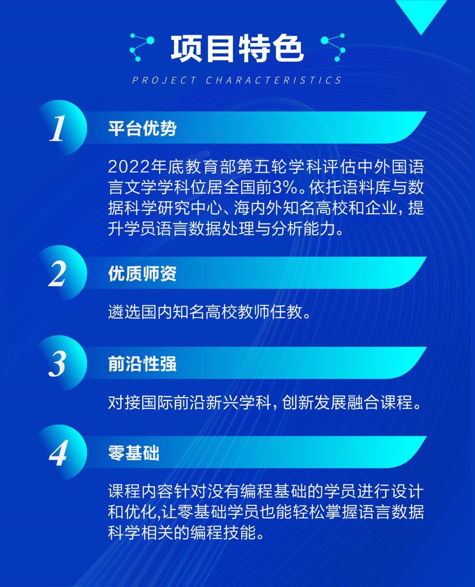 该项目致力于培养具备语言科学、语言智能和计算机科学等多学科知识,具有广阔国际视野、社会责任感和创新实践能力的语言数据科学拔尖创新人才。