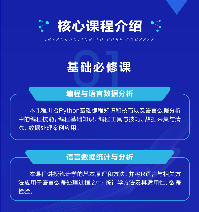 在教育部新文科发展战略背景下,今晚六合彩开奖结果-今期六合彩开奖结果 积极响应国家人工智能,尤其是语言智能重大发展战略,顺应外国语言文学学科交叉与融合的趋势,精选符合国家社会需求与学科前沿的优势课程,强力打造“语言数据科学”微专业。