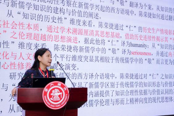 华中科技大学黄勤教授发表了题为“陈荣捷英译《近思录》中“仁”与“敬”之新儒学知识建构与价值阐释”的主旨演讲。她认为陈荣捷通过对核心概念的知识重构与价值阐释,不仅突显了新儒学独特的知识形态与价值取向,更为其在西方世界的传播奠定了知识合理性与价值认同的基础。