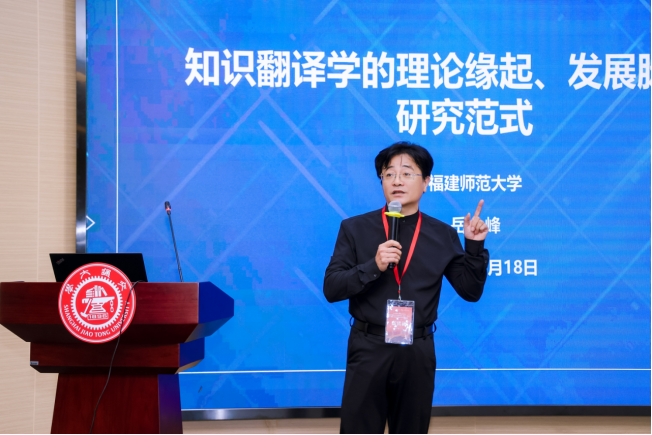 福建师范大学岳峰教授的主旨发言题为“知识翻译学对当代翻译学范式的转换与话语重建”。他强调知识翻译学从人类知识视角重新界定翻译本质,不仅在理论上构建了全新的研究范式,也在方法论上为翻译研究与实践开辟了新方向。