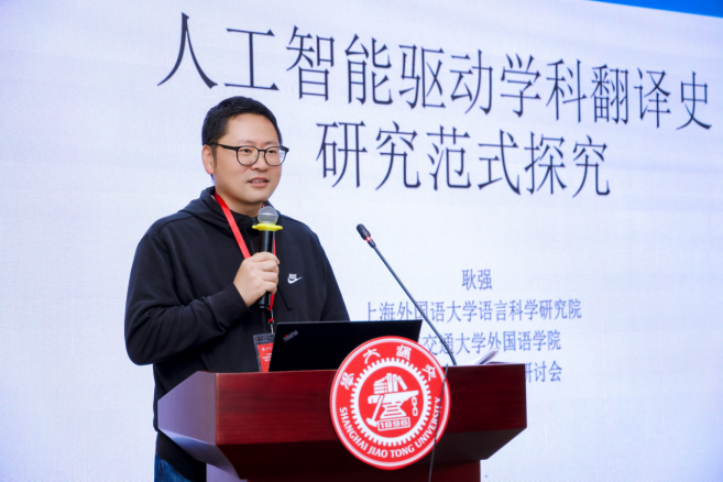 上海外国语大学耿强教授在会议上发表了题为“人工智能驱动学科翻译史研究范式探究”的主旨演讲。面对人工智能驱动人文社科研究的新形势,耿强教授提出,应从数据、方法、过程与问题四个维度系统构建人工智能驱动的研究范式,为探索数据化时代的知识生产开辟新的可能。