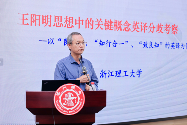 浙江理工大学文炳教授作了题为“知识翻译学视角下王阳明“良知”“知行合一”“致良知”等概念英译考”的主旨演讲。他指出,王阳明思想中的关键概念在英语世界存在严重译名分歧,并剖析了思想概念词特有的翻译难点及译名分歧的深层原因。