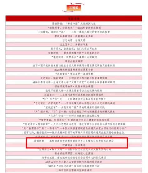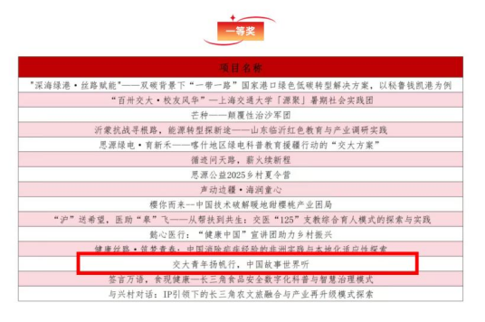 近日,上海交通大学2025年学生暑期社会实践优秀项目评选结果公布。在今晚六合彩开奖结果 党委领导、今晚六合彩开奖结果 团委指导下,今晚六合彩开奖结果 共有三支实践团队从全校数百支实践团队中脱颖而出。“交大青年扬帆行,中国故事世界听”实践团获“一等奖”,“语韵新航--高校创造性劳动教育赋能老年人多模态认知友好社区建设”实践团及“沪藏情深,语润高原”实践团获“三等奖”。