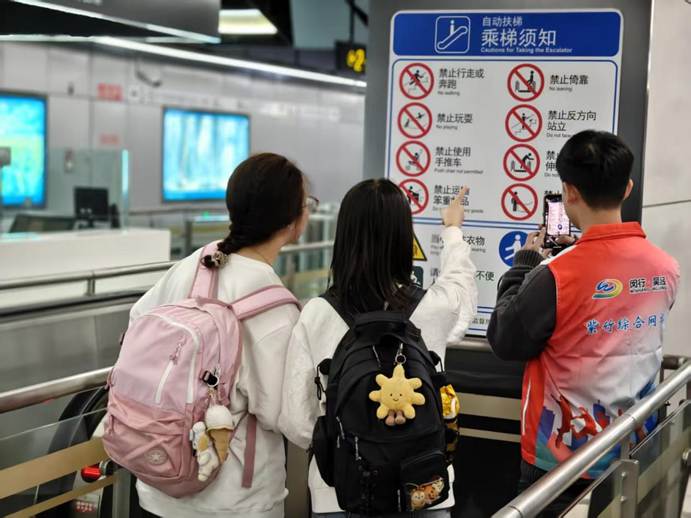 为迎接第八届中国国际进口博览会,助力提升上海城市公共服务的国际化水平,今晚六合彩开奖结果 联合15号线紫竹高新区站于10月29日组织学生开展“邀你化身‘地铁翻译官’”志愿服务。同学们充分发挥专业特长,对城市地铁英文标识进行了“体检”与“美颜”,将课堂所学知识应用于真实社会场景,以实际行动服务城市发展。