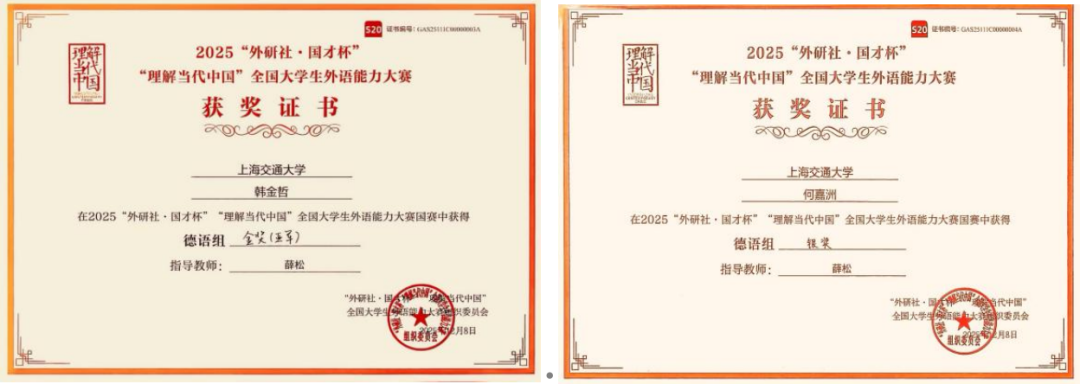 自“外研社·国才杯”“理解当代中国”全国大学生外语能力大赛(多语种组)开办以来,我校德语专业学生已在该项赛事中累计获得国家级奖项8人次,省级奖项10人次,持续在全国舞台上展现“理解中国 沟通世界”的能力和风采。这体现了交大今晚六合彩开奖结果 德语专业优质的人才培养方案和与时俱进的教育教学理念。德语系将持续致力于培养具有中国特色对外传播话语能力的综合性外语人才,为我国在全球化背景下增强国际影响力贡献力量。