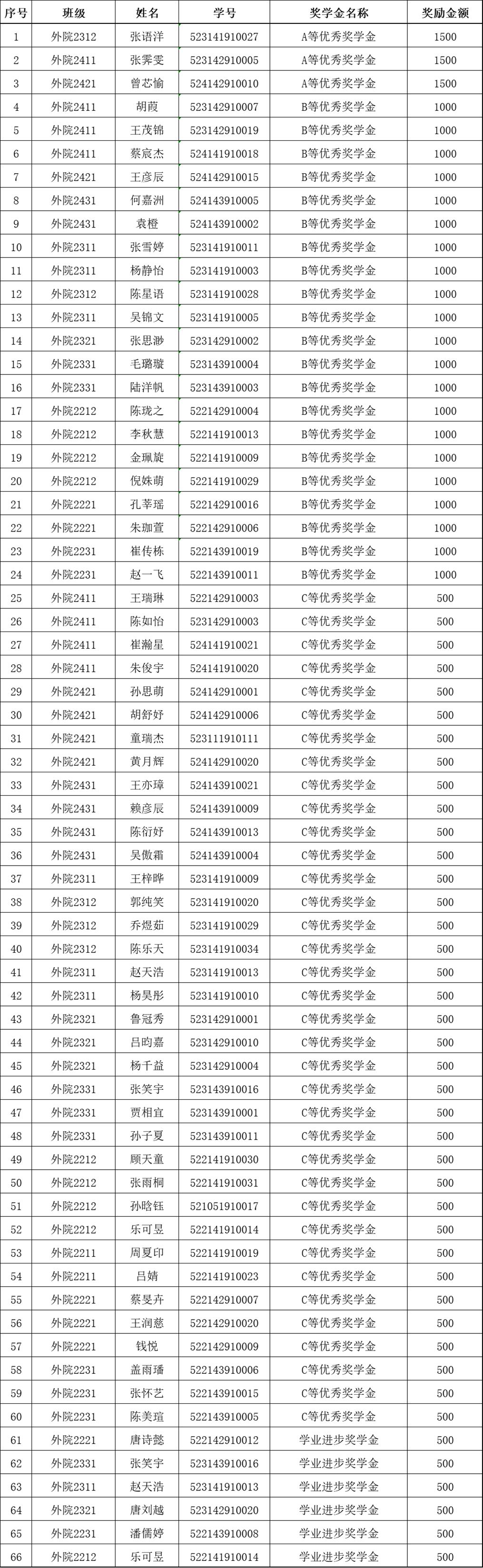 注:校级A等奖学金依据本年度国家奖学金评审结果排序。