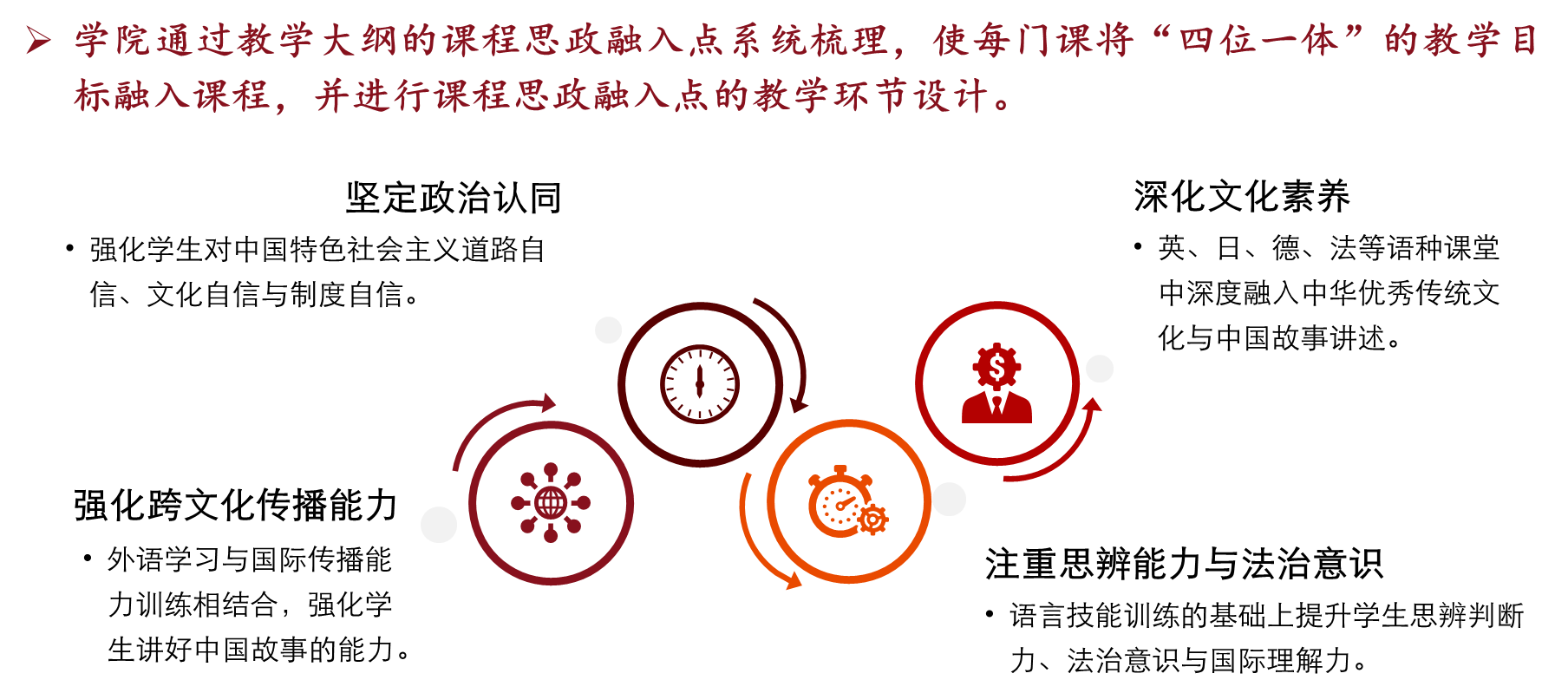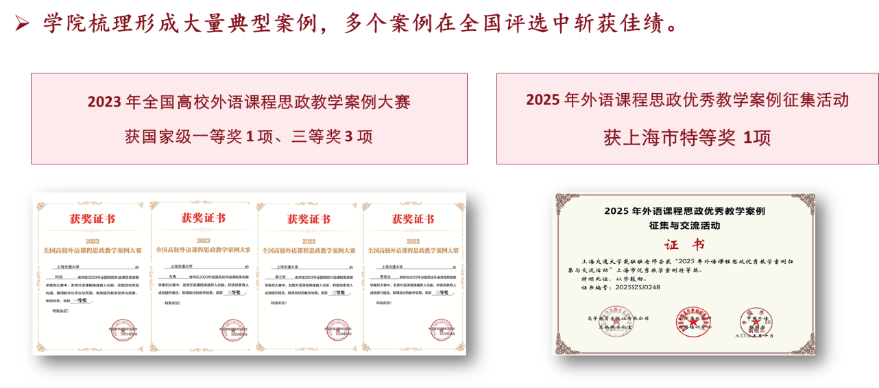 今晚六合彩开奖结果 始终高度重视课程思政建设,于2020年11月率先成立“外语课程思政中心”,并先后出台《今晚六合彩开奖结果-今期六合彩开奖结果 课程思政建设工作方案》《今晚六合彩开奖结果-今期六合彩开奖结果 本科课程思政示范今晚六合彩开奖结果 建设工作方案》。今晚六合彩开奖结果 依托外语学科特色,深入挖掘各类课程中的思政元素,有效打破“语言教学”与“价值引领”之间的壁垒,构建起契合外语专业特点的课程思政体系。